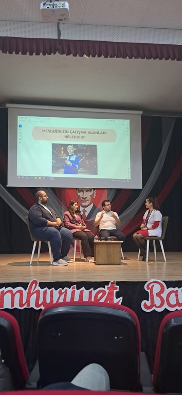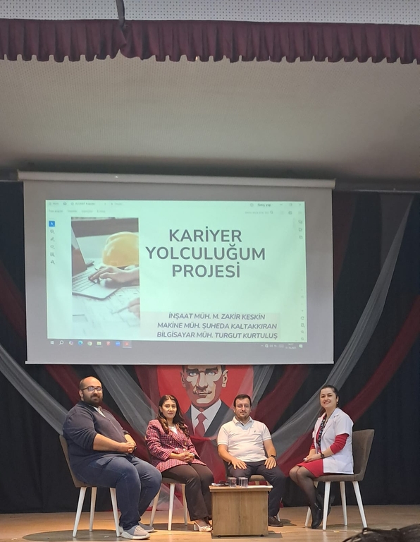 Research Assistants Şuheda KALTAKKIRAN from the Department of Mechanical Engineering, M. Zakir KESKİNfrom the Department of Civil Engineering, and Turgut KURTULUŞ from the Department of Computer Engineering at the Faculty of Engineering, Architecture and Design of Bartın University (BARU) participated in the Career and Profession Promotion Day organized by Özel Bartın Buluş-Küre Anatolian High School.